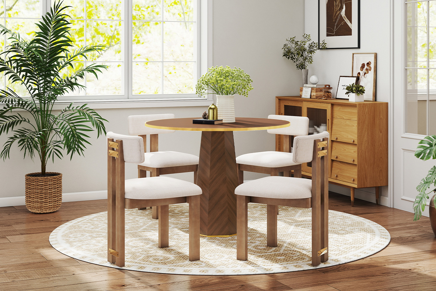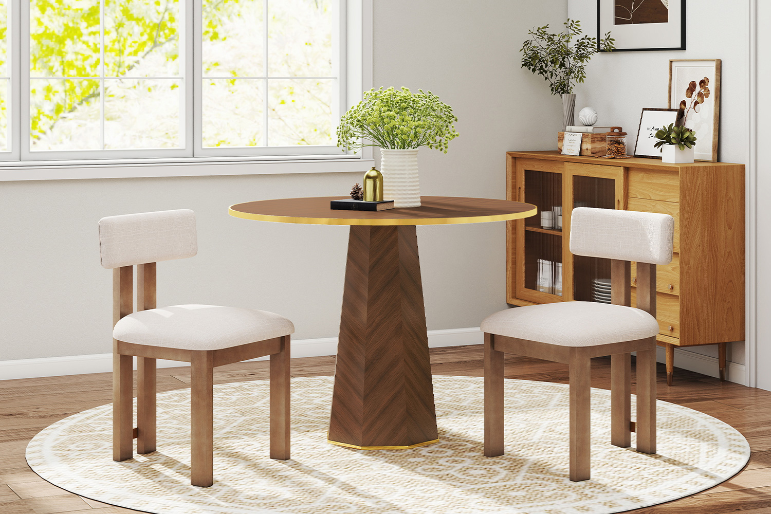 Designed for everyday use, this dining table set supports regular meals, casual dining, and hosting guests. The solid structure of the table and chairs provides reliable seating and stability, helping elevate the dining experience for daily use as well as special occasions and holidays.