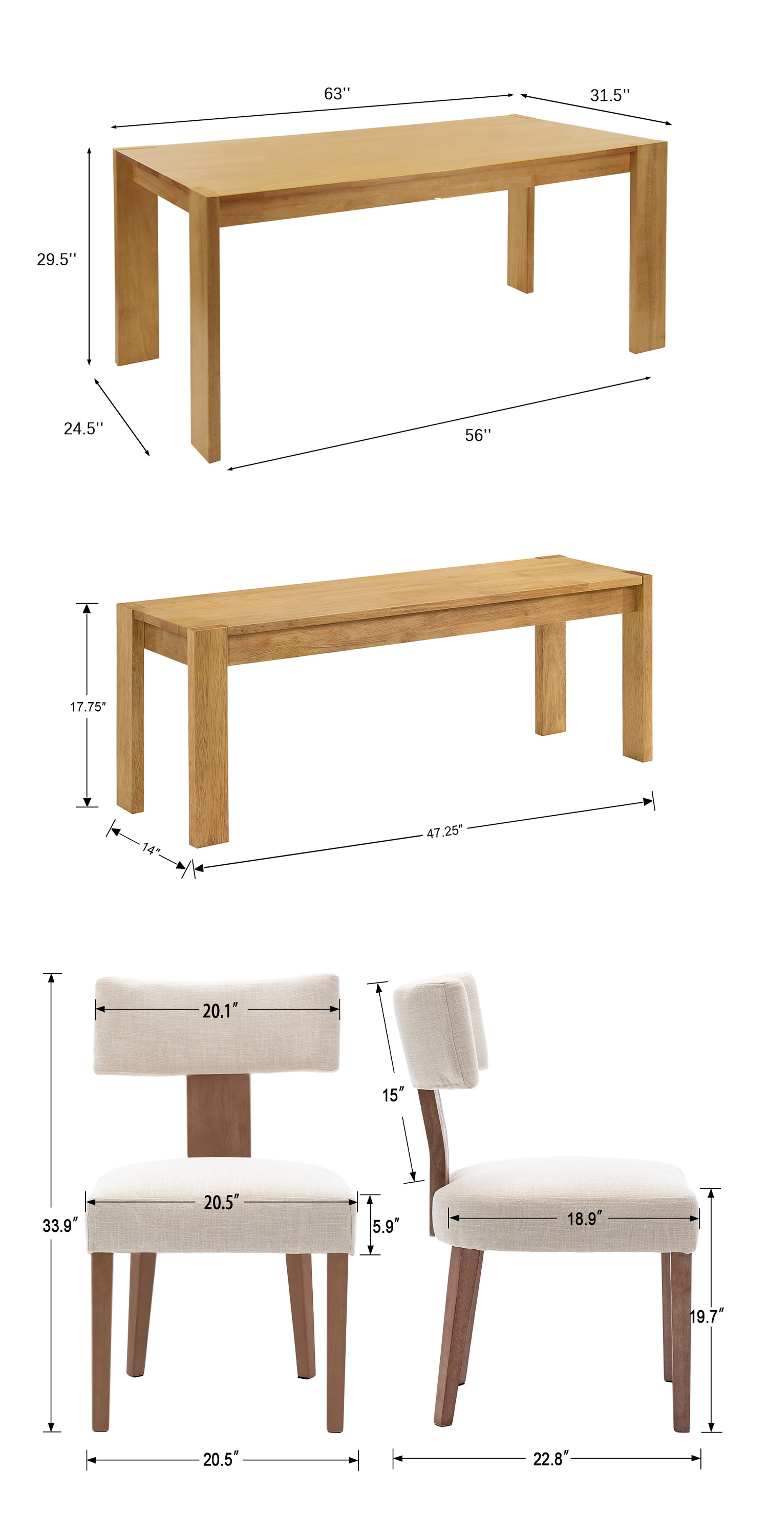 Chair Materials: Linen, Solid Wood