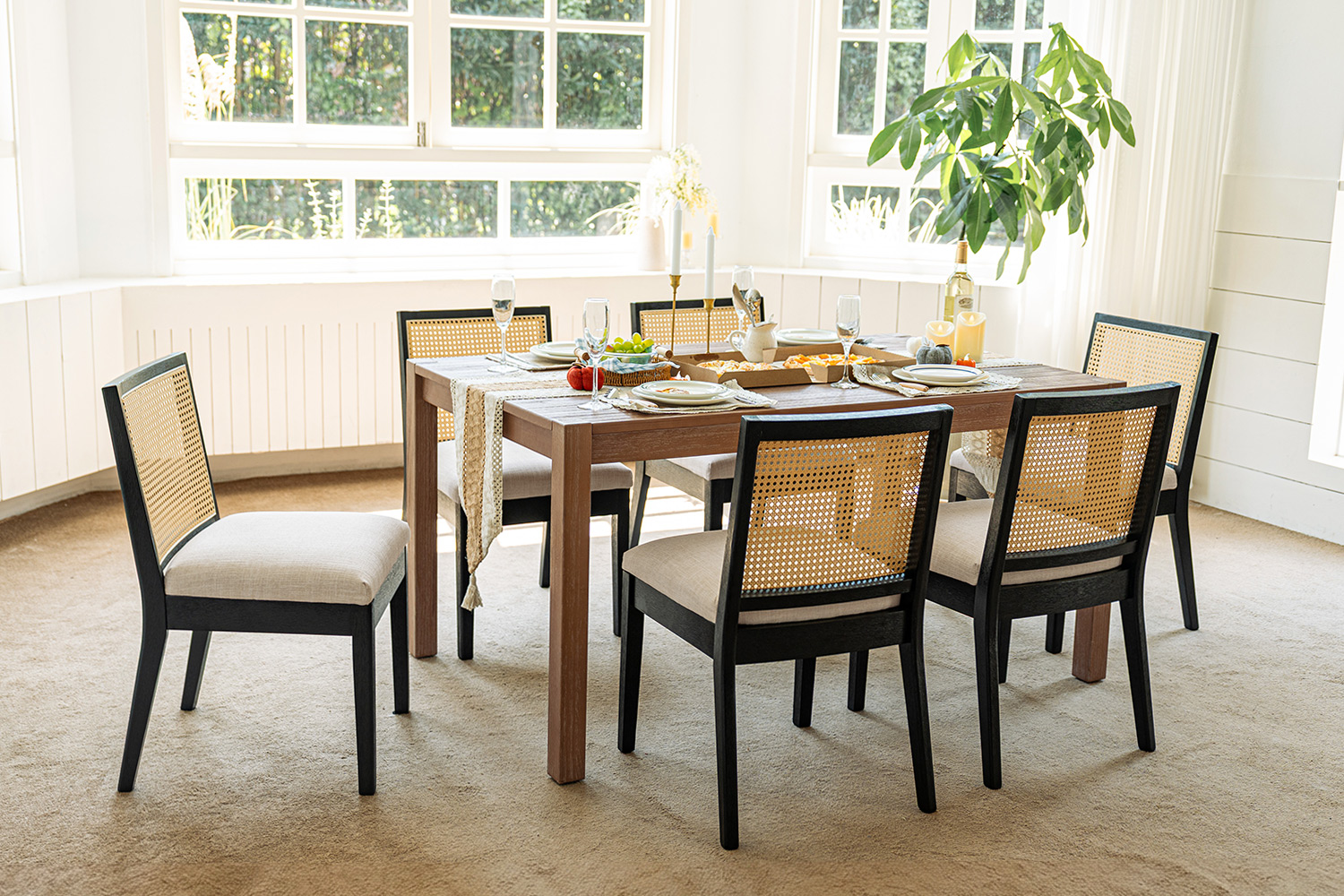 They’re a great option for smaller layouts. The open cane back dining design keeps your dining space feeling light and airy instead of heavy or crowded. Because the chairs are relatively lightweight and easy to move, you can slide them under the table, reposition them as extra seating, or even use one at a computer desk when needed.